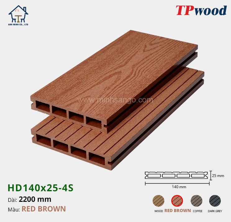 - Tên thương hiệu: Sàn gỗ nhựa TPwood HD140x25-4S-Red Brown